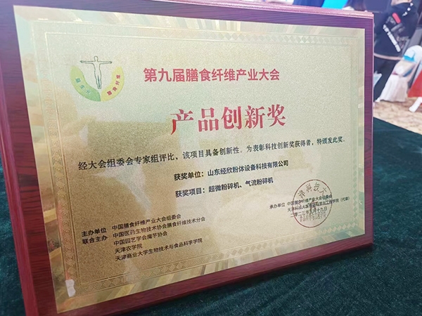 山东经欣粉体设备科技有限公司荣获“第九届膳食纤维产业大会科技创新奖”