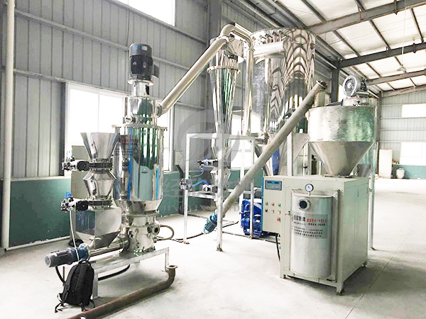 ● 粉碎过程中,由于气流急剧膨胀而使气流温度降低,尤其适合于热敏性、低熔点、含糖份及挥发性物料的粉碎。